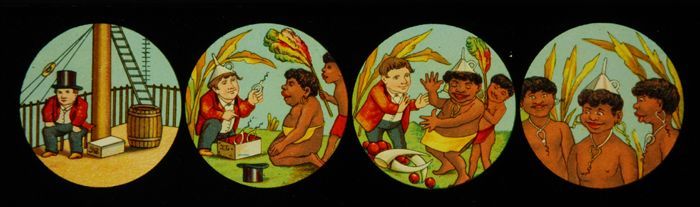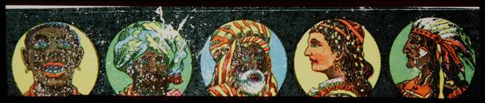 Lantaarnplaat met portretten van verre volkeren
