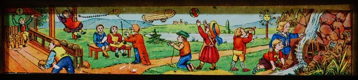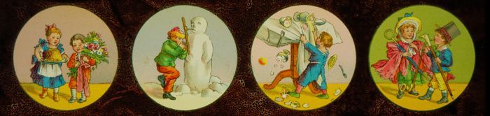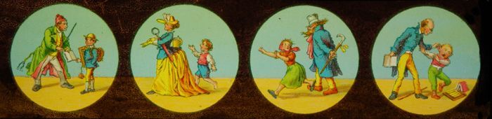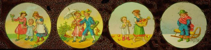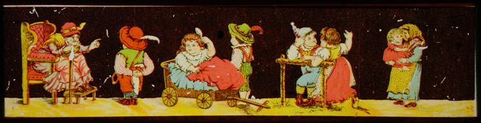 Lantaarnplaat met komische taferelen met kinderen