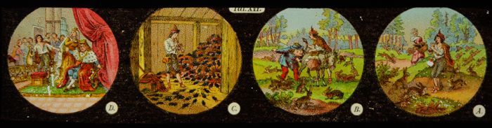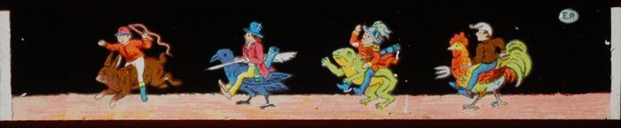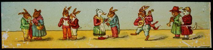 Lantaarnplaatje met aangeklede dieren