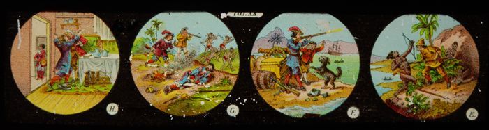 Lantaarnplaat met fragment Robinson Crusoë