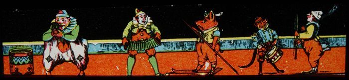 Lantaarnplaat met clowns en aangeklede dieren