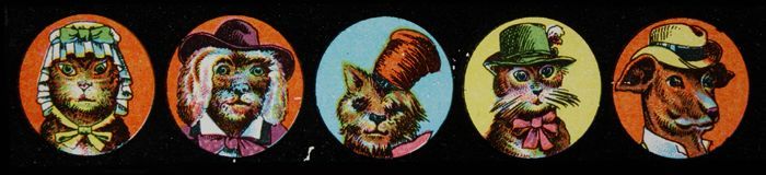 Lantaarnplaat met portretten van aangeklede dieren