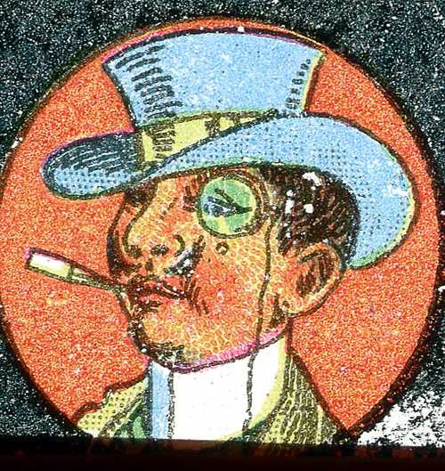 Lantaarnplaatje met sjofel type, dandy's en kruier