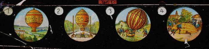 Lantaarnplaatje met vier ´Montgolfier´- luchtballonn...