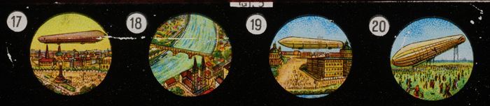 Lantaarnplaatje met luchtballonnen en Zeppelins uit ...