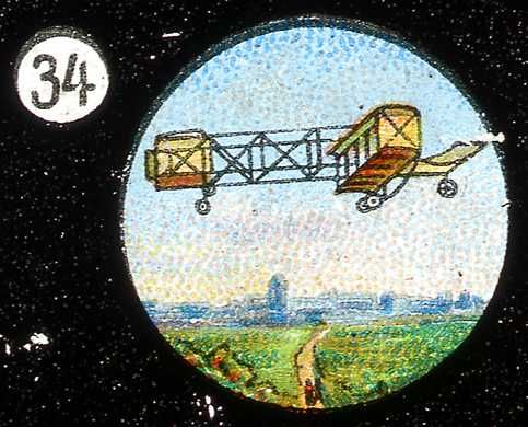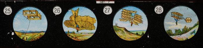 Lantaarnplaatje met ouderwetse vliegtuigen uit reeks...