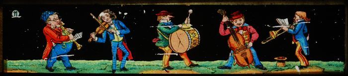 Lantaarnplaatje met muzikanten