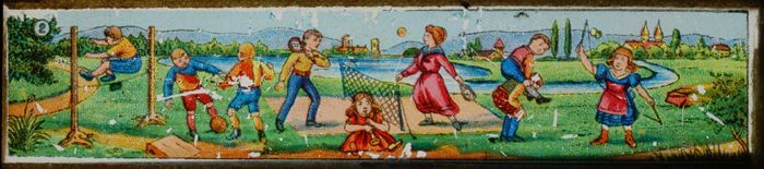 Lantaarnplaatje met sportende mensen in de buitenlucht