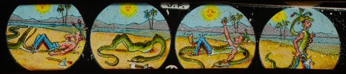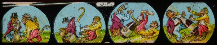 Lantaarnplaatje met merkwaardige taferelen