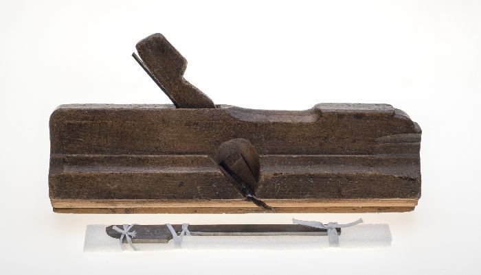 Houten profielschaaf, met initialen "CVE"