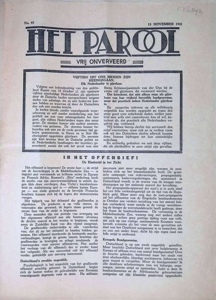 Het Parool, no 45, 13 november 1942