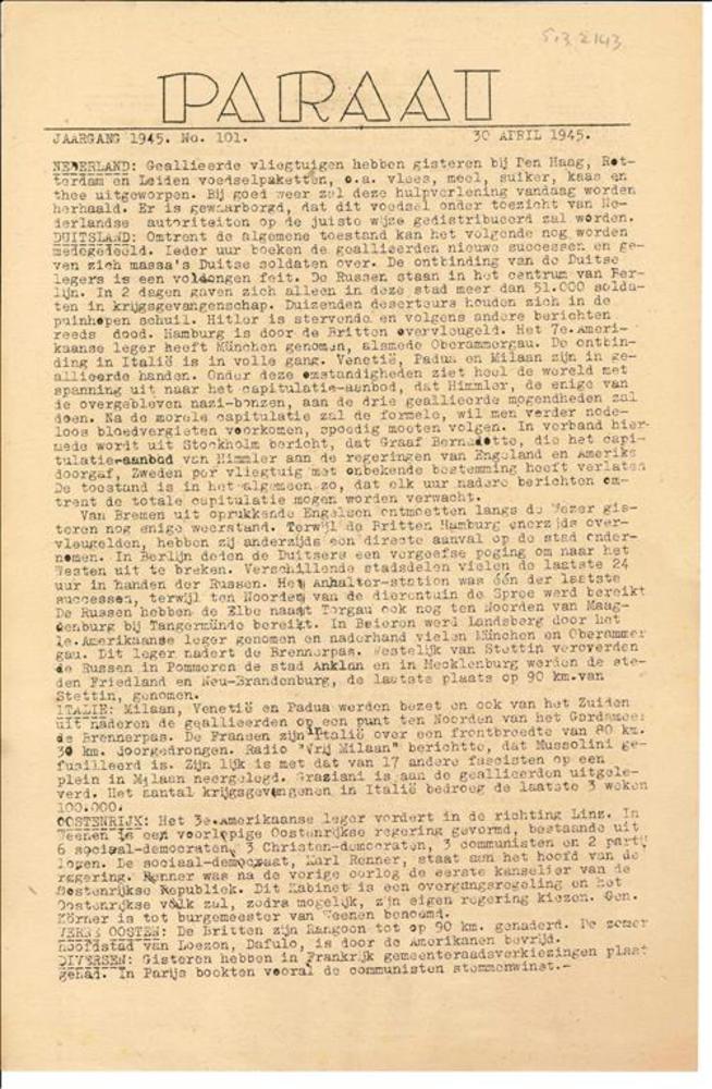 Paraat Jaargang 1945, Nr. 101, 30 April 1945