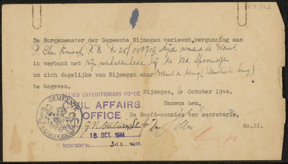 Permissie, P.Ch. Knoop, 16 oktober 1944