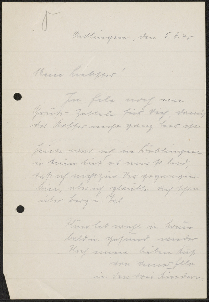 Briefje aan Hubert van Ella d.d. 05-06-1940