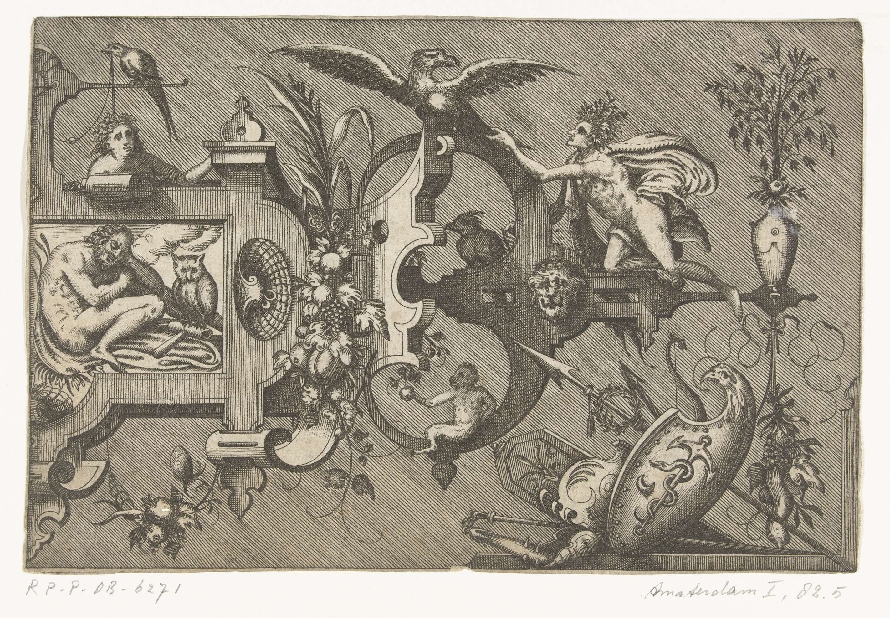 Cartouches met medaillons en staande figuren
