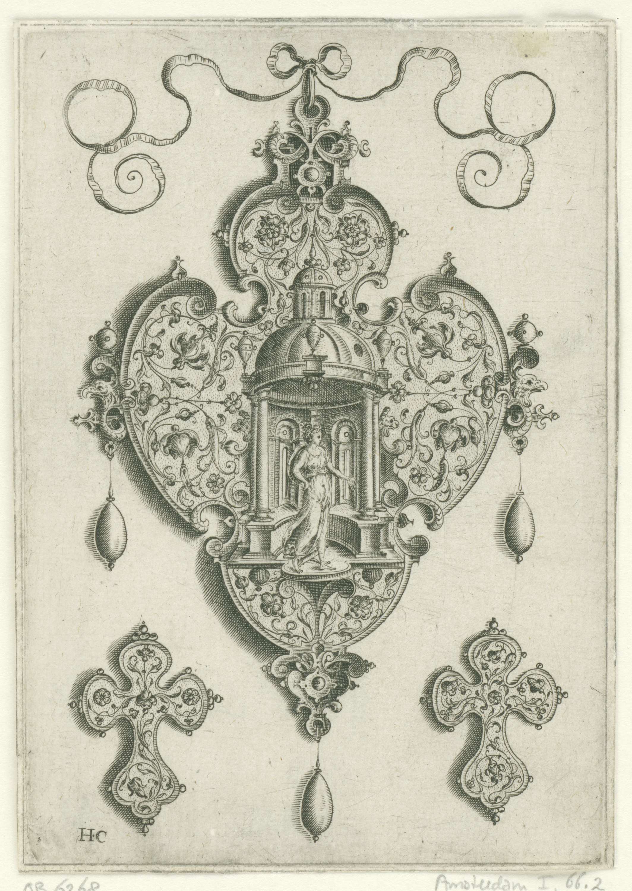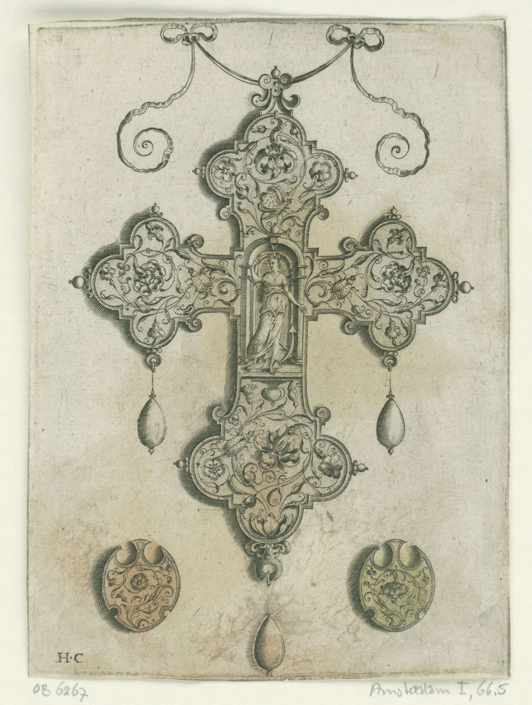 Voorzijde van een hanger, met Diana in nis