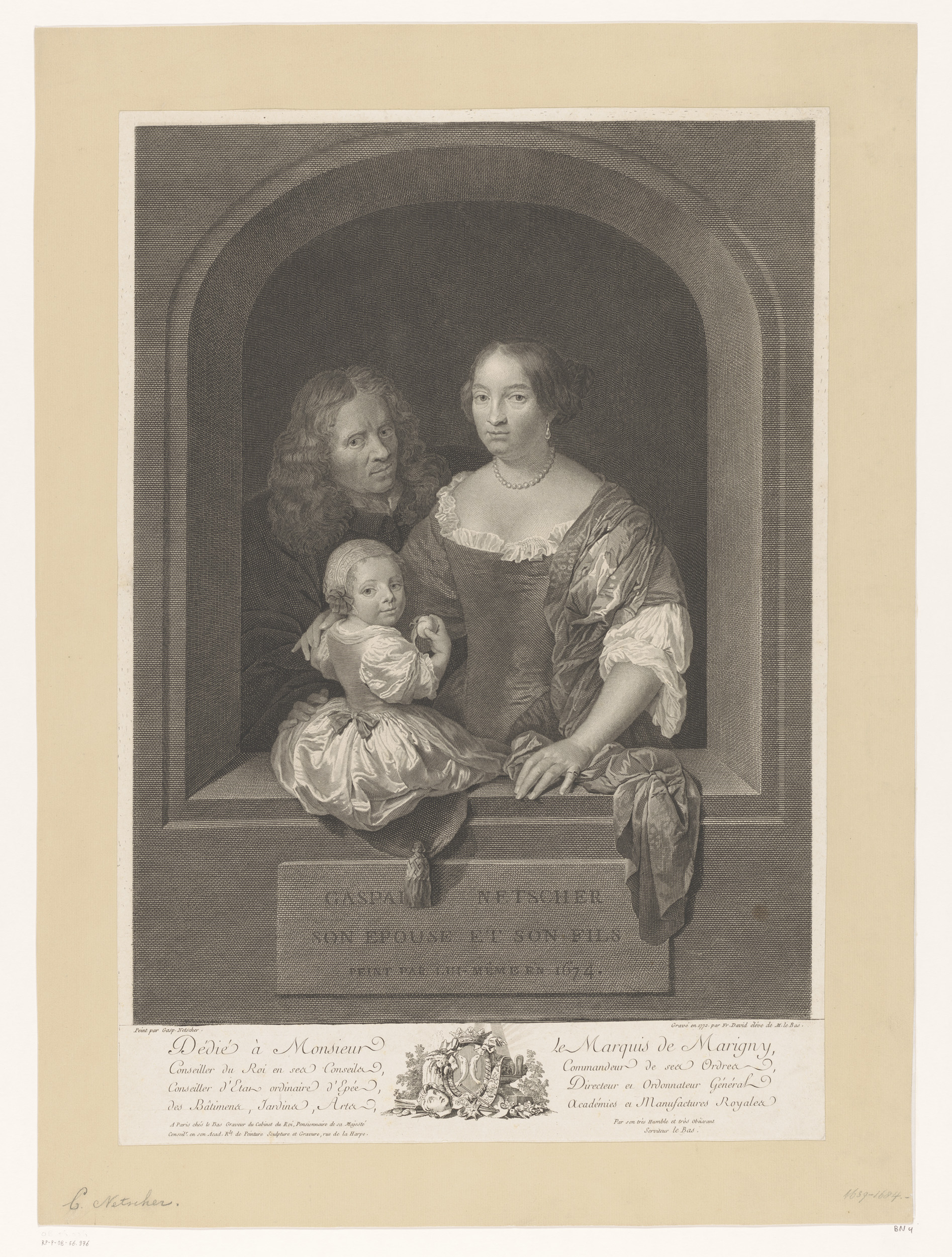 Caspar Netscher met zijn vrouw en zoon in een open raam