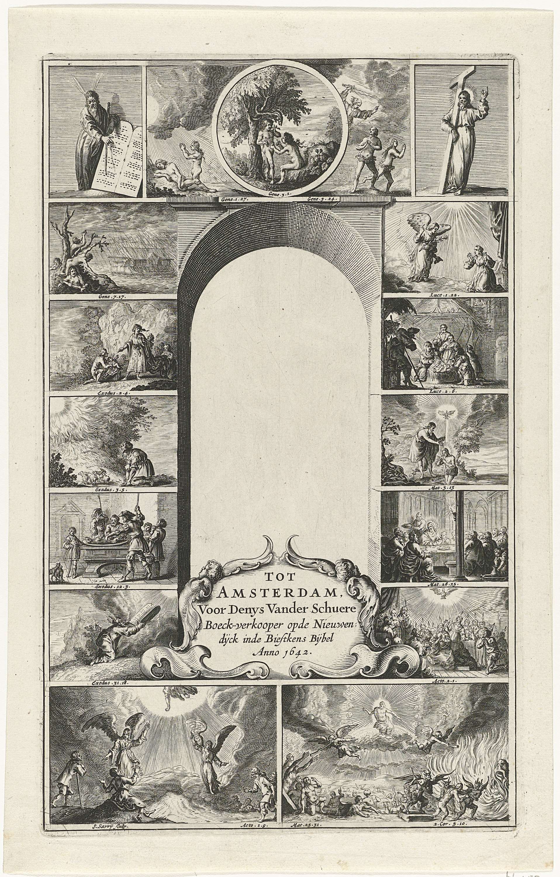 Omlijsting met scènes uit het Oude en Nieuwe Testament