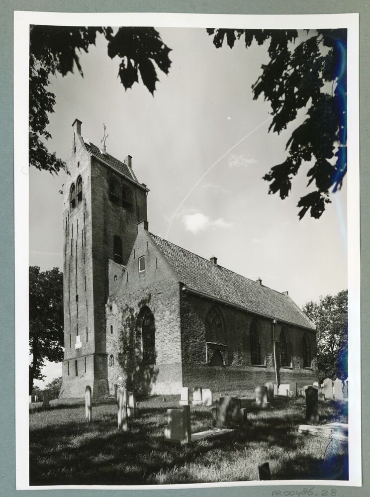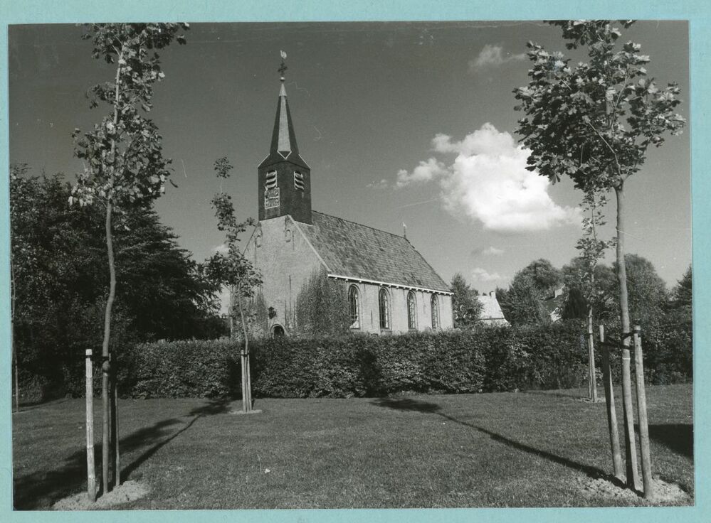 Zwart-wit foto van een kerk te Roodkerk