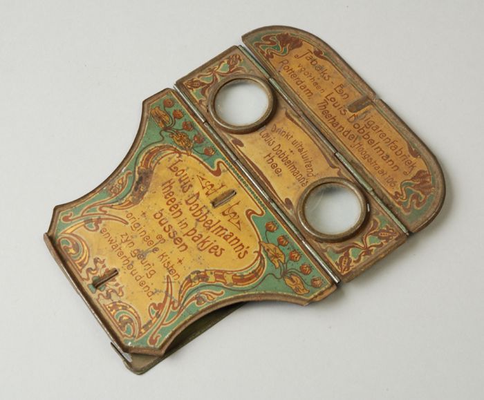 Uitklapbare stereokijker met reclame Louis Dobbelmann's