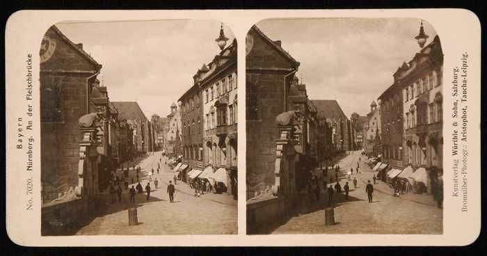 Stereoscoopplaat: "Nürnberg. An der Fleischbrücke"