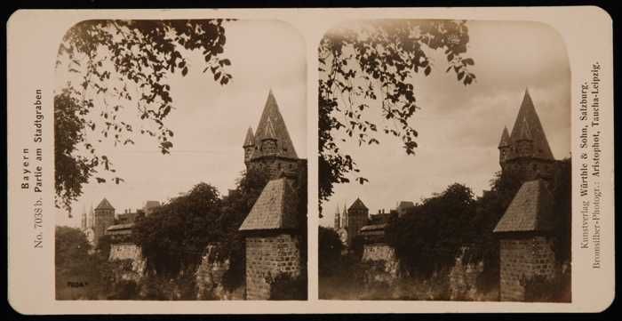Stereoscoopplaat: "Bayern / Partie am Stadtgraben"