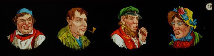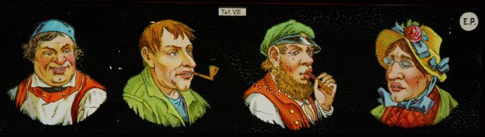 Toverlantaarnplaat "E.P." (Ernst Plank) met vier bustes
