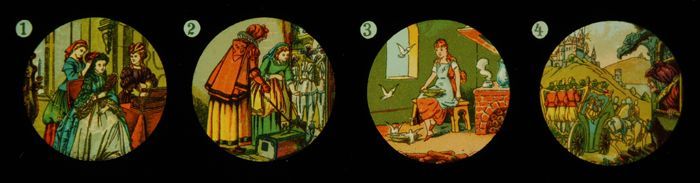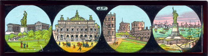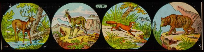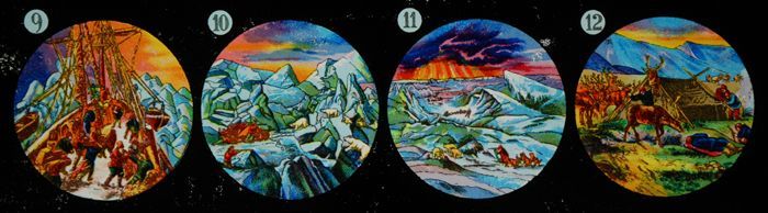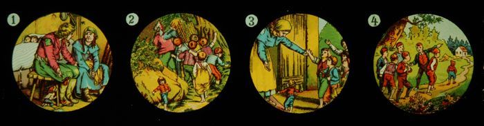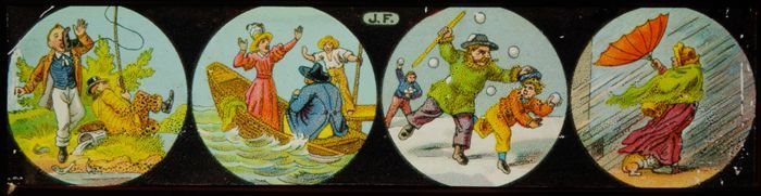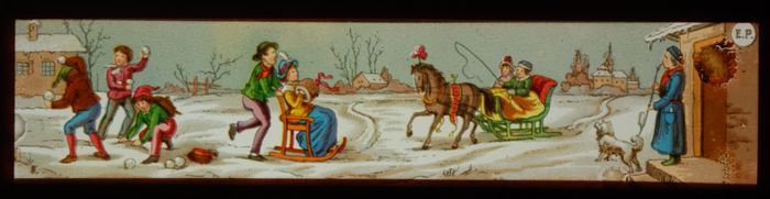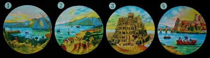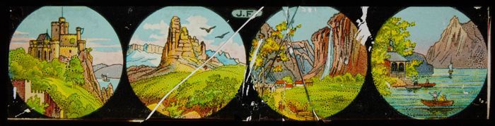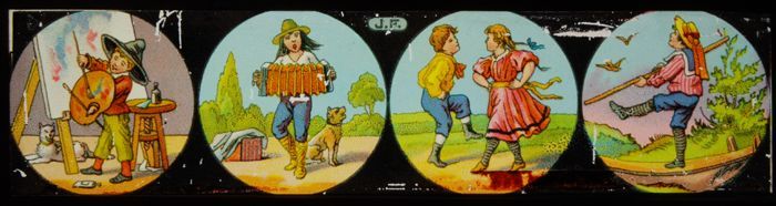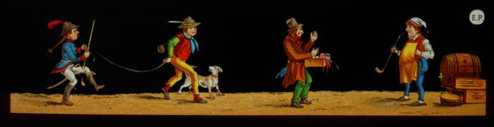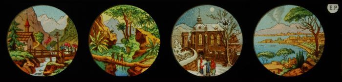 Toverlantaarnplaat "E.P." (Ernst Plank) met vier ber...