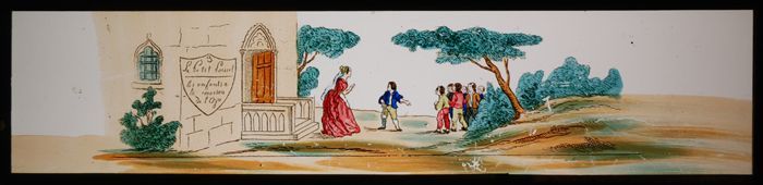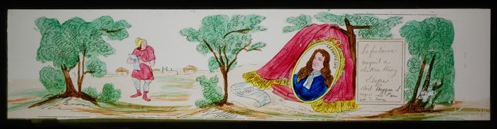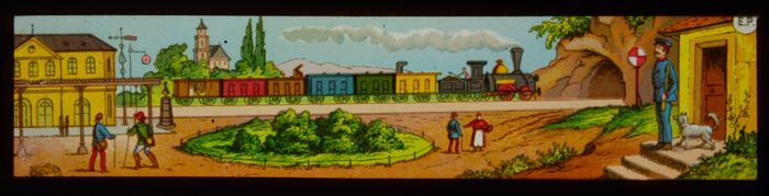 Gekleurde toverlantaarnplaat, merk "E.P." (Ernst Plank)