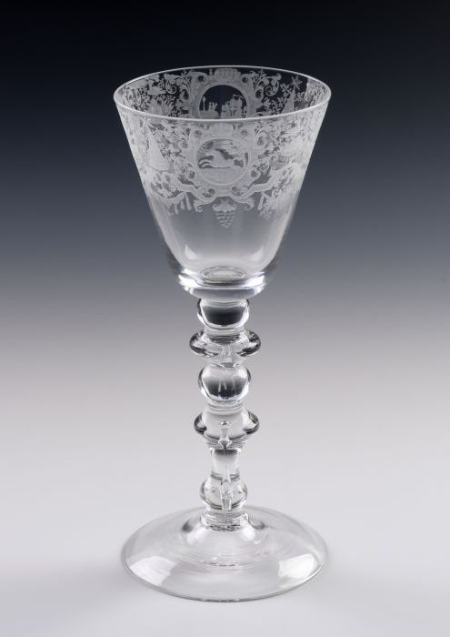 Kelkglas gegraveerd met decoratieve rand met vier ca...