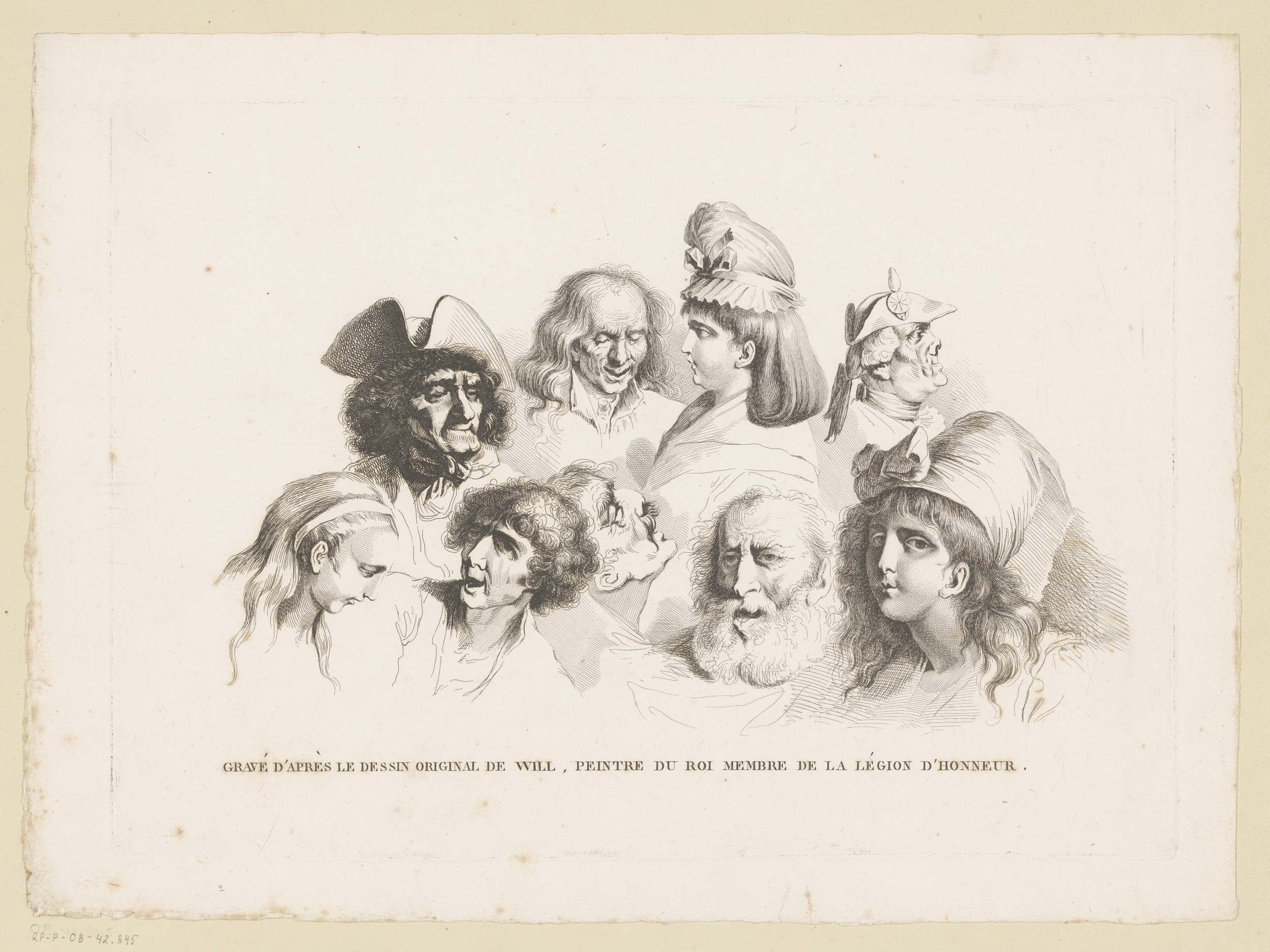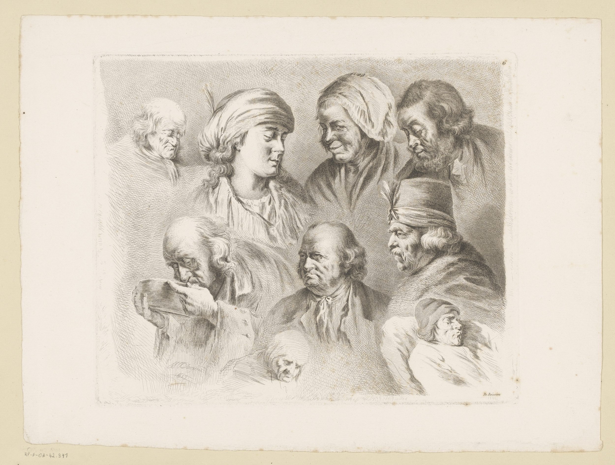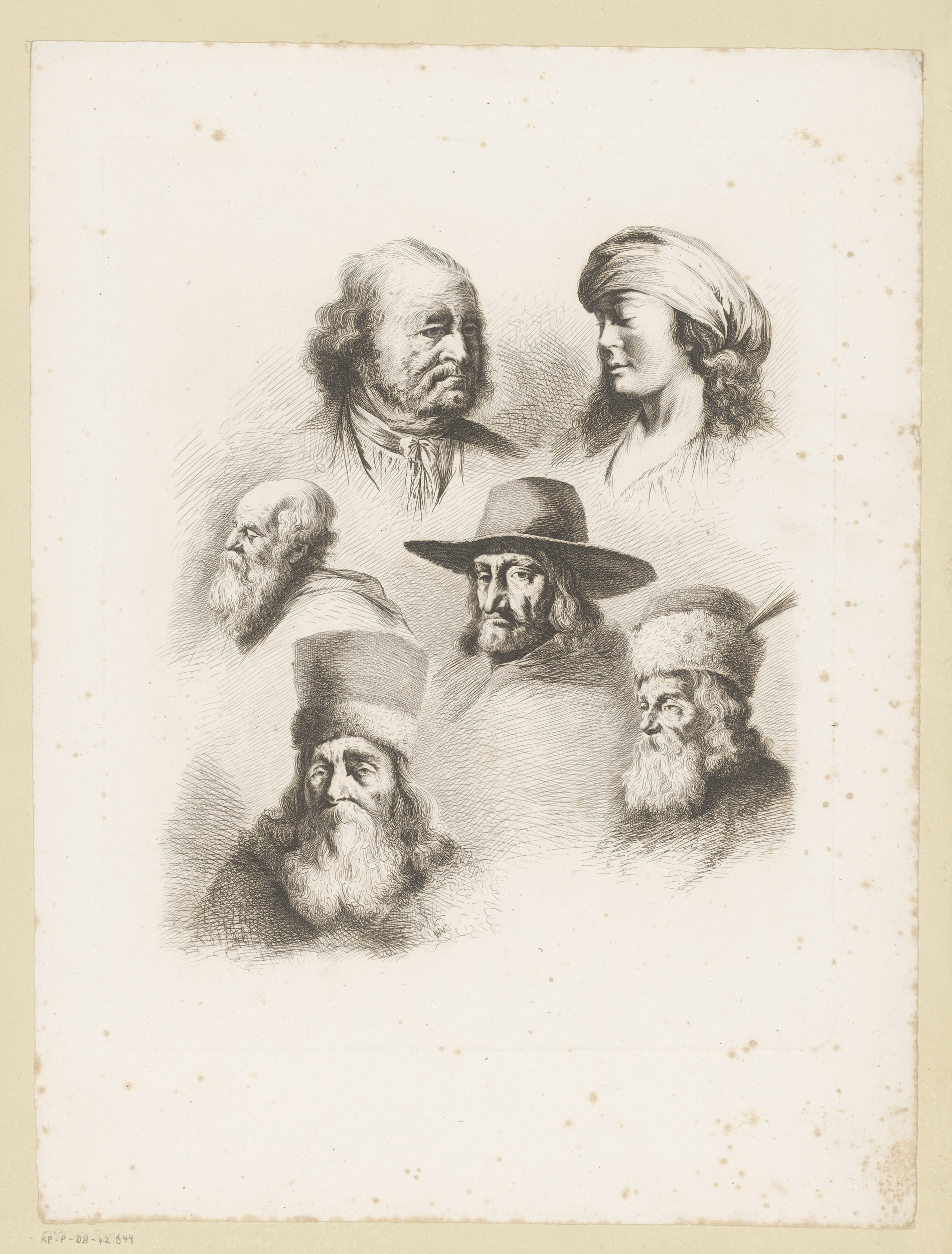 Compositie met zes hoofden van mannen en vrouwen van...