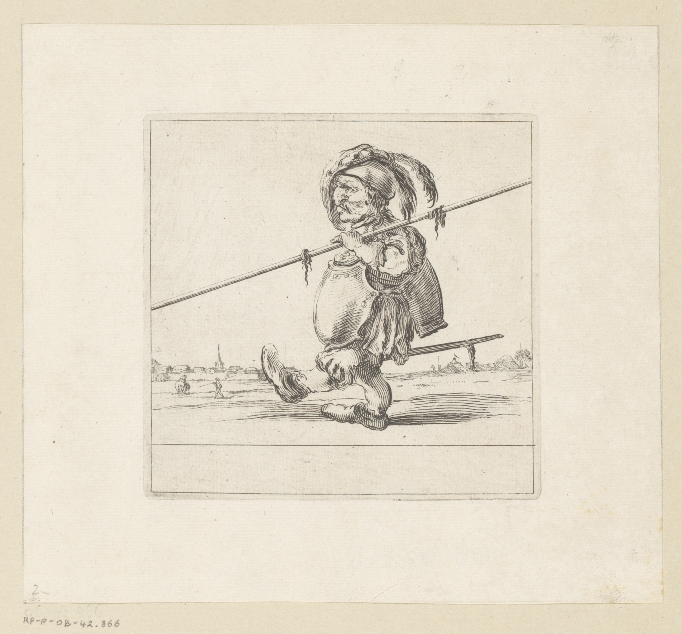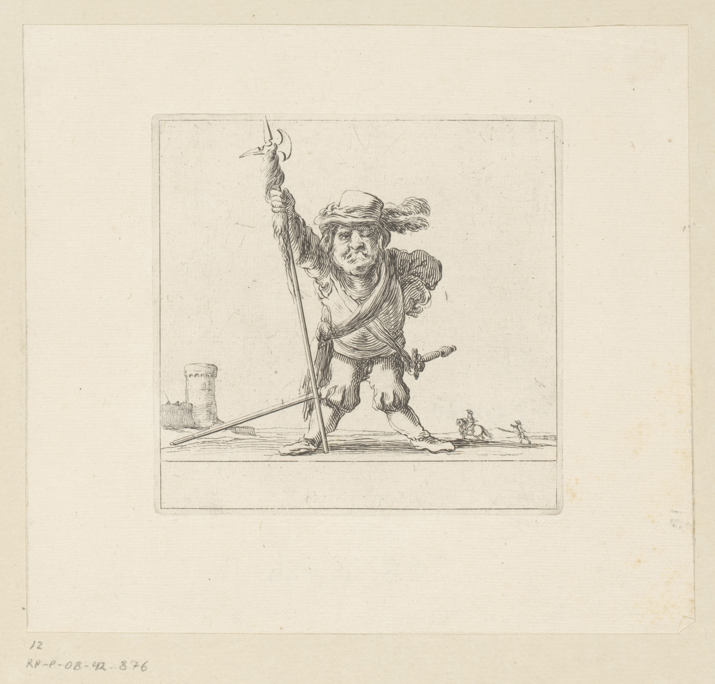 Karikaturale figuur met lans