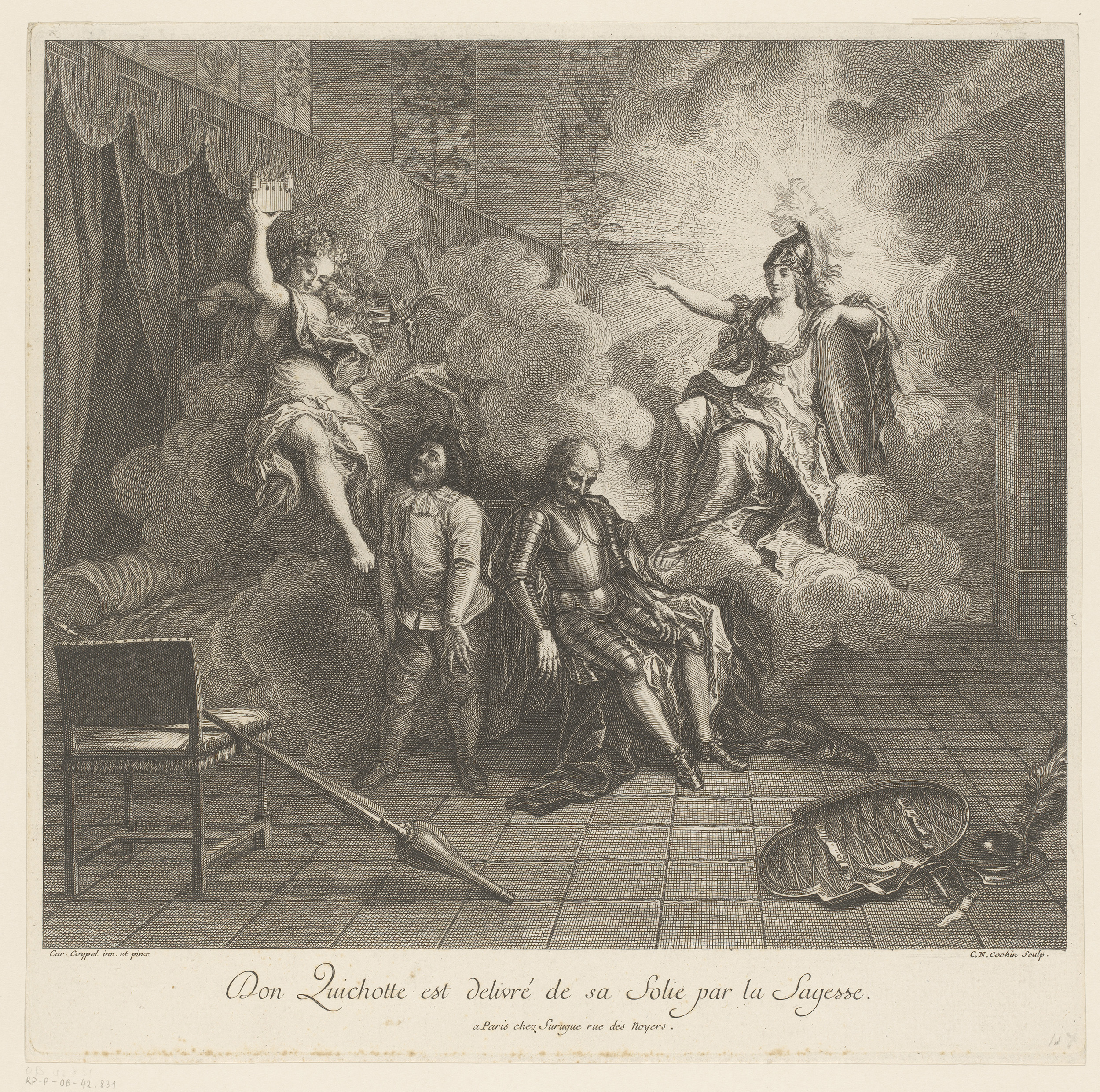 Don Quichot van zijn dwaasheid bevrijd door de Wijsheid