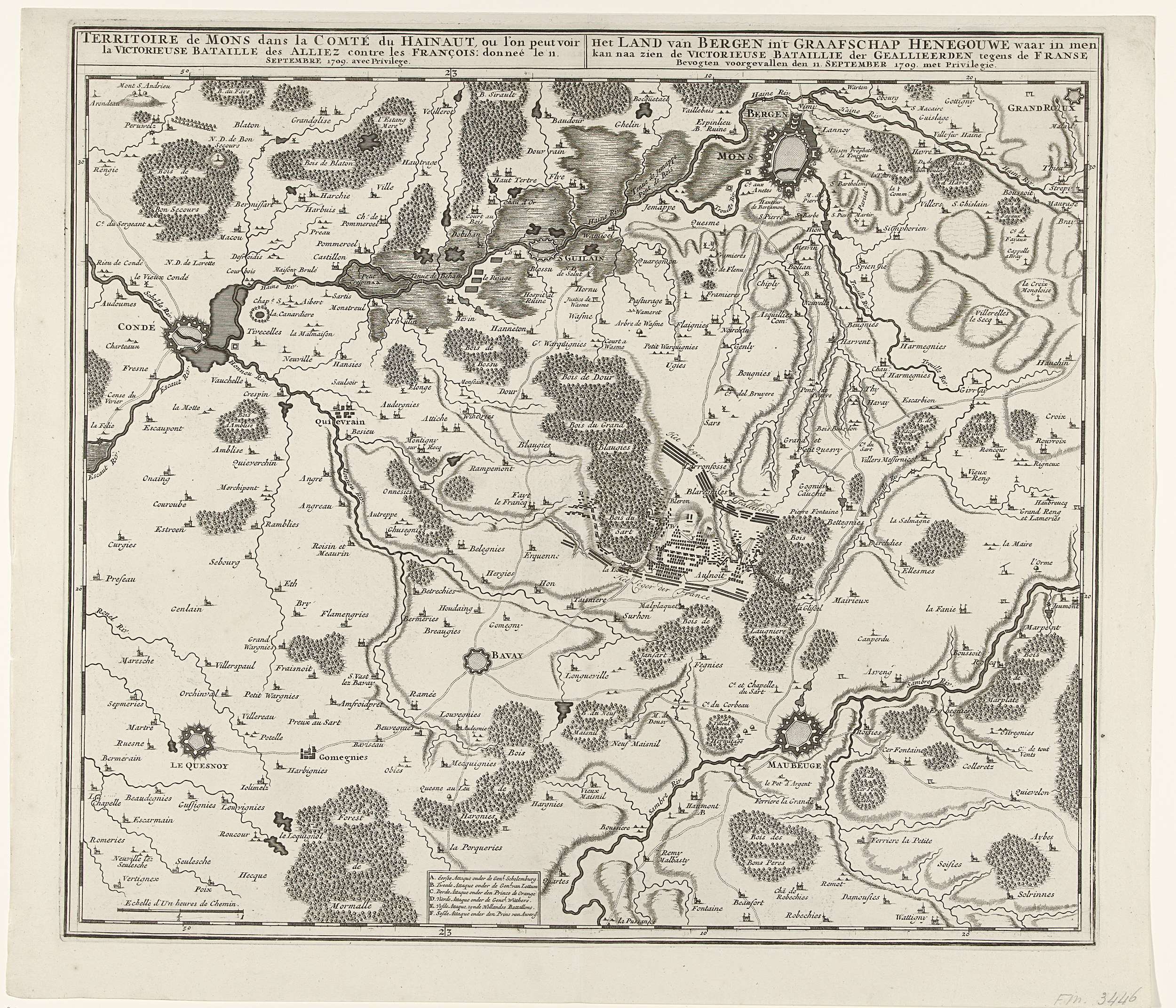 Kaart met de slag bij Malplaquet, 1709