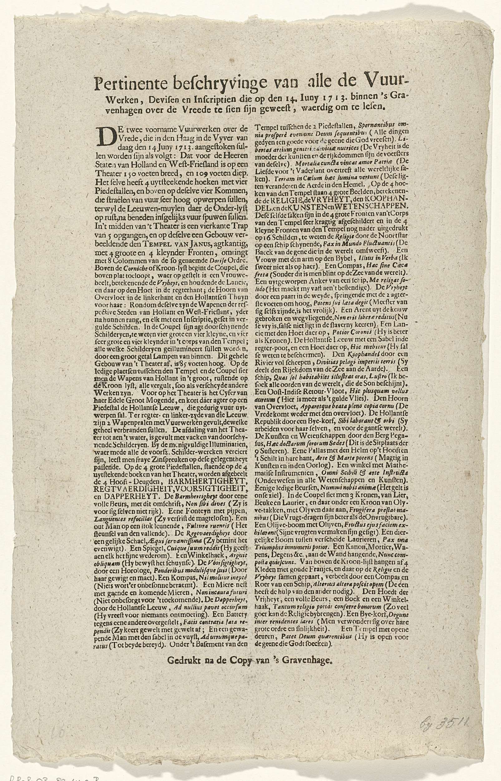 Beschrijving van het vuurwerk bij de viering van de ...