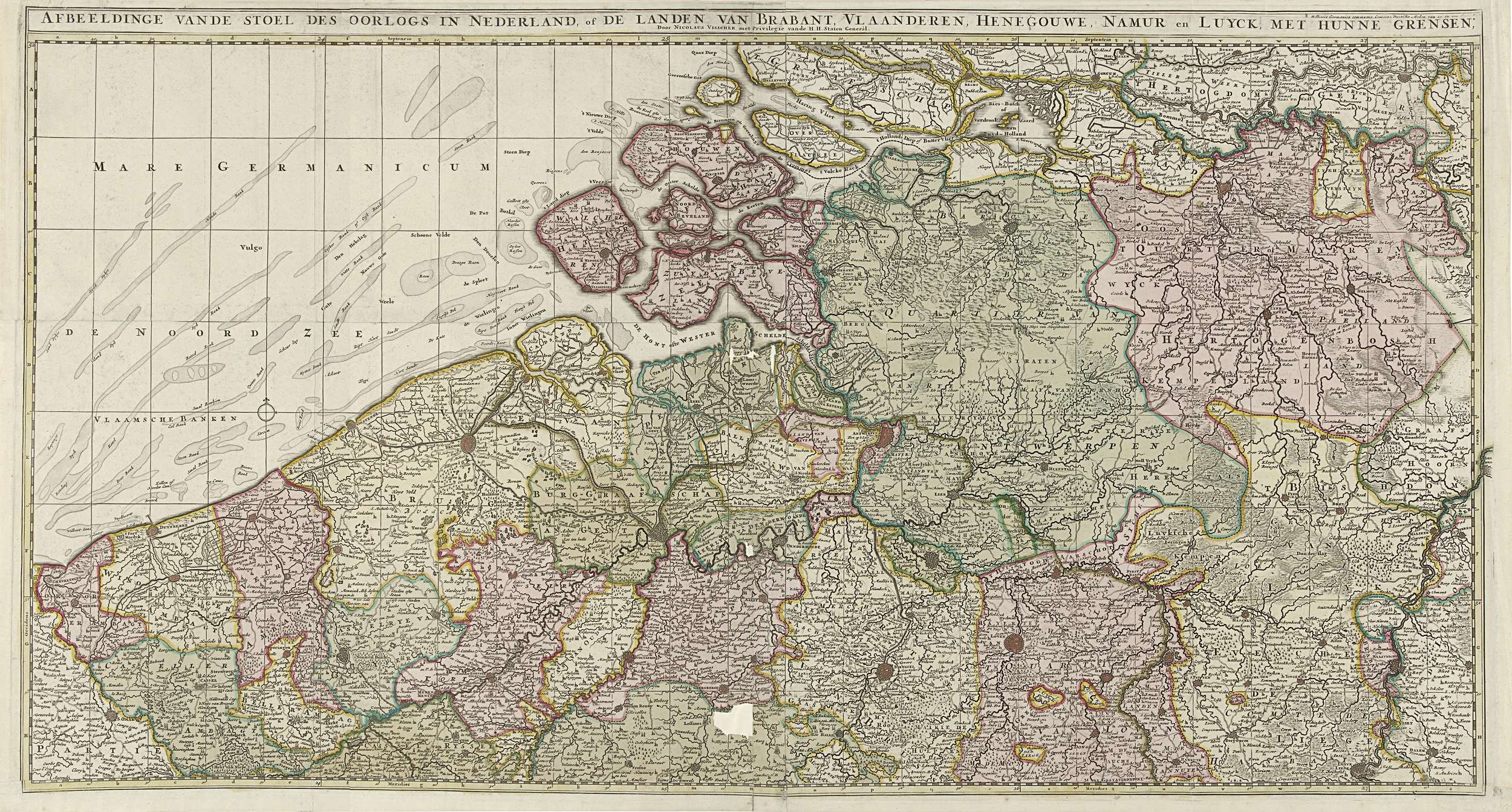 Kaart van de Zuidelijke Nederlanden, ca. 1701-1702