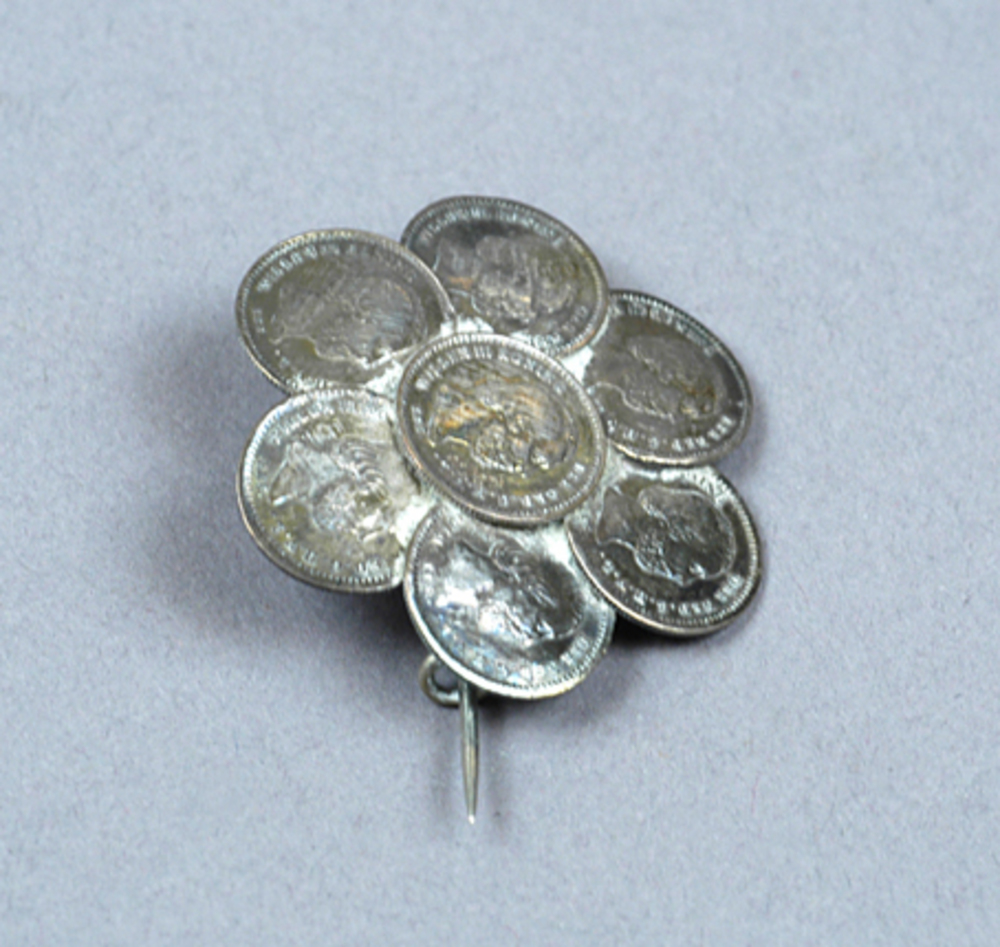 zilveren herinneringsbroche van 7 5-cents munten met...