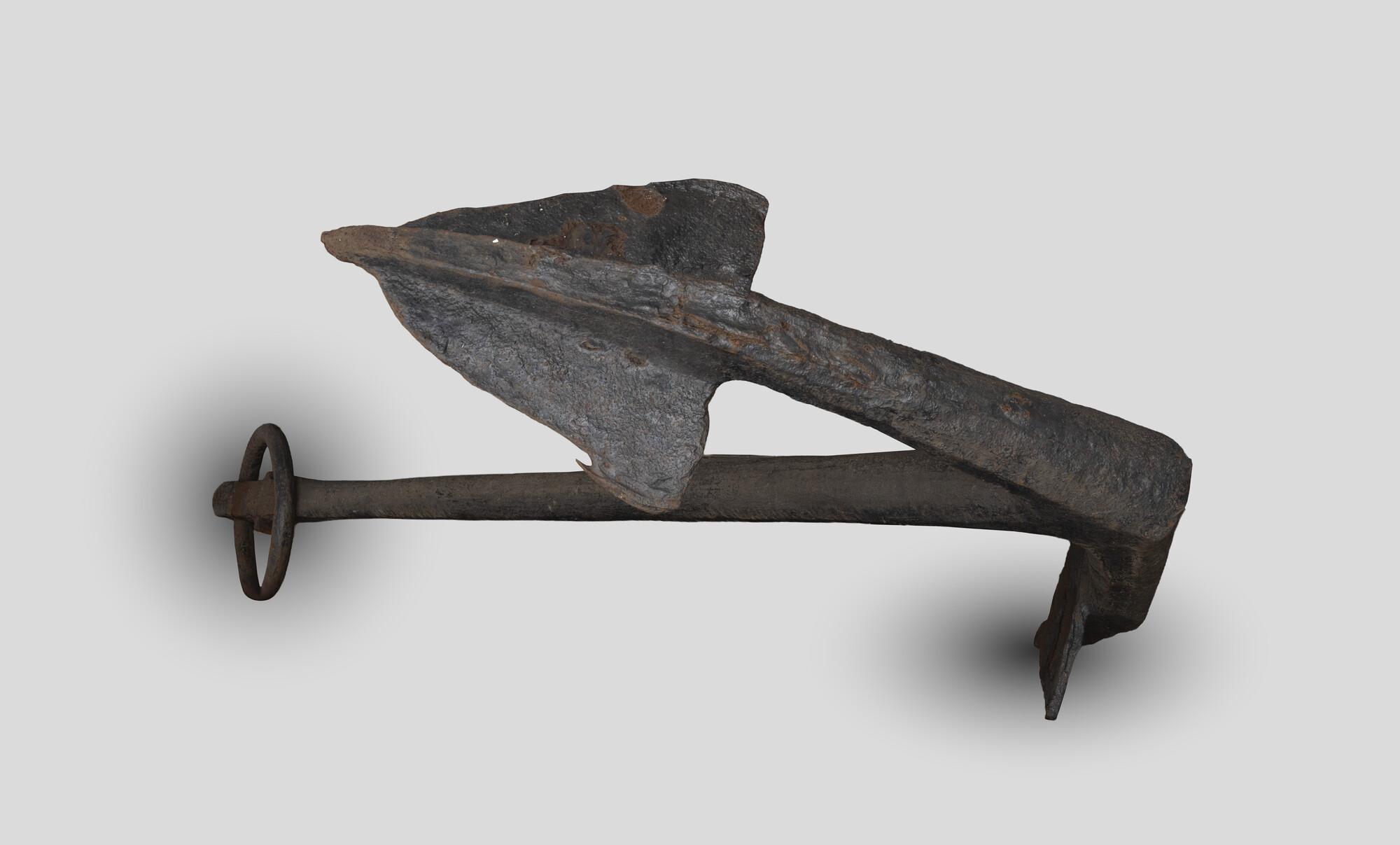 IJzeren scheepsanker met houten stok