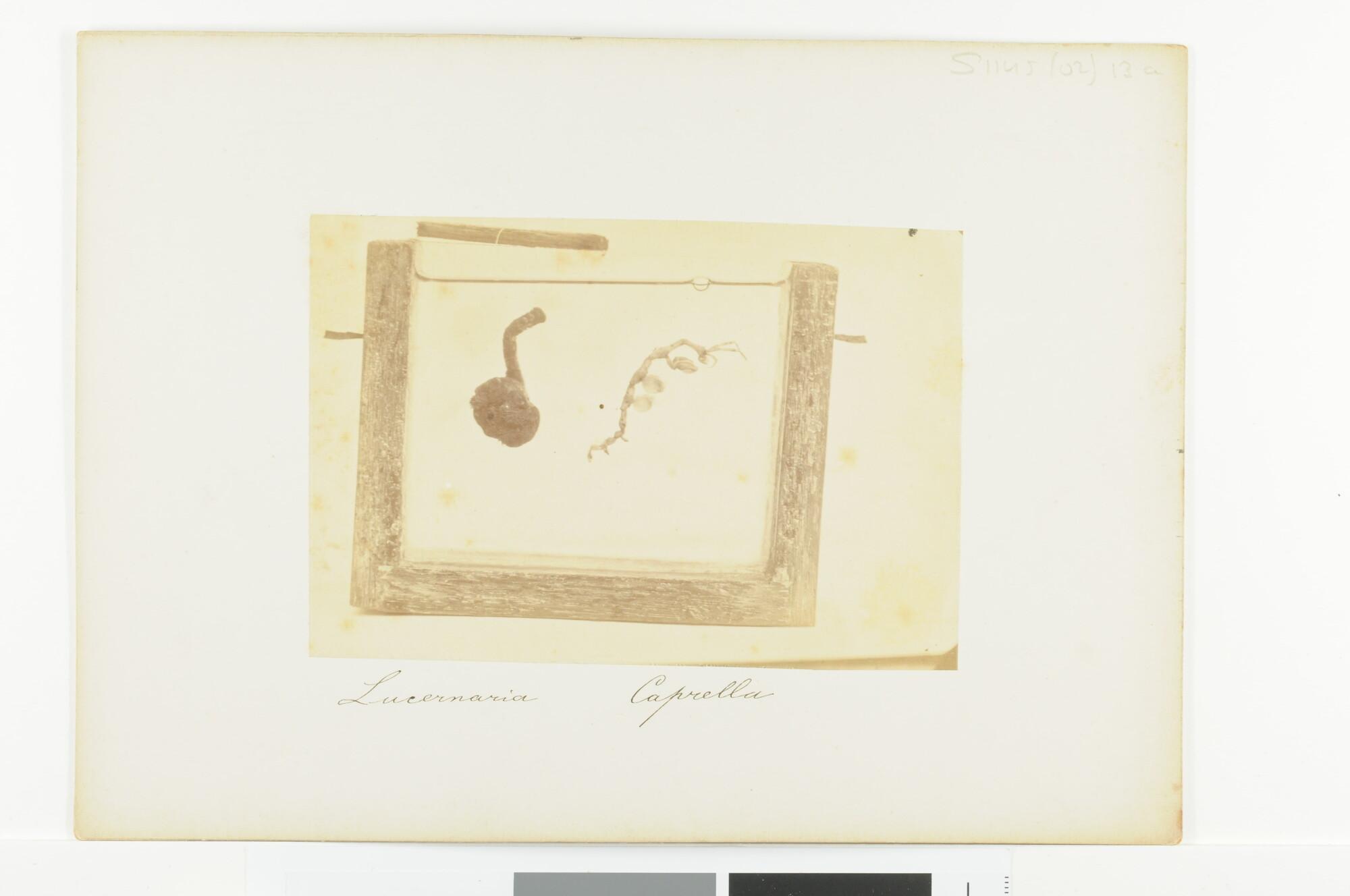 Zijaanzicht van een Lucernaria en Caprella gevangen ...