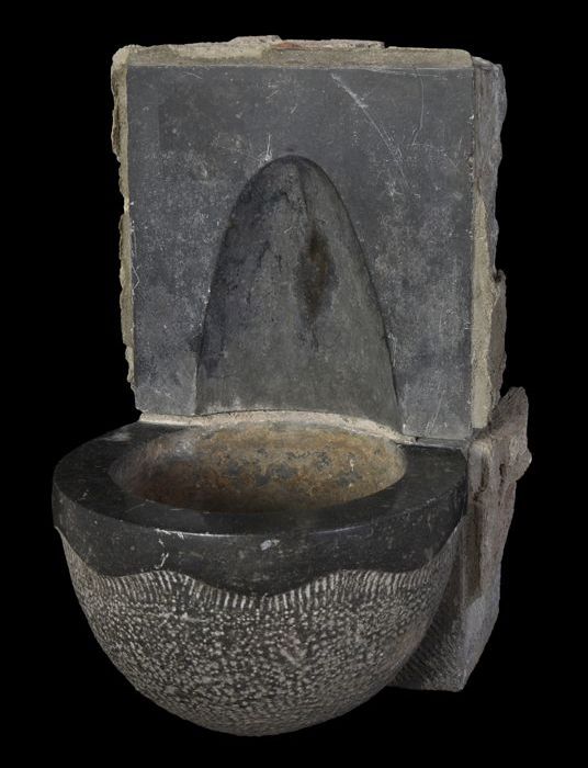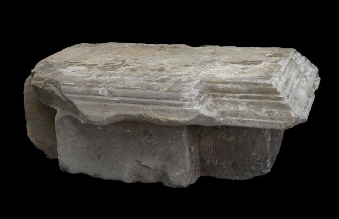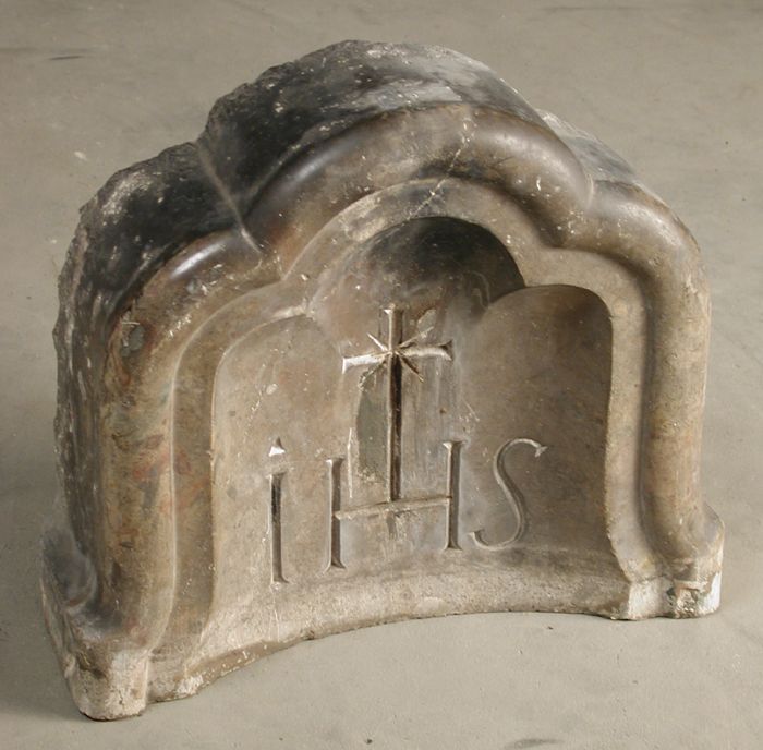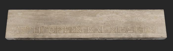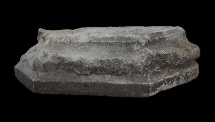 Travertijnen schoorsteenlatei bankgebouw Blaak met "...