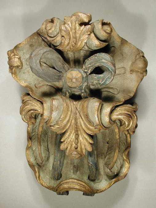 Kroonstuk gesneden uit eikenhout, met gouden acanthu...