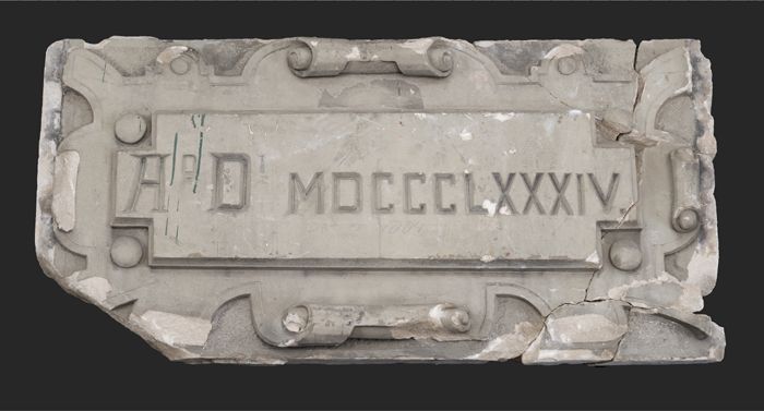 Jaartalsteen met cartouche en "Ao D MDCCCLXXXIV" (bi...