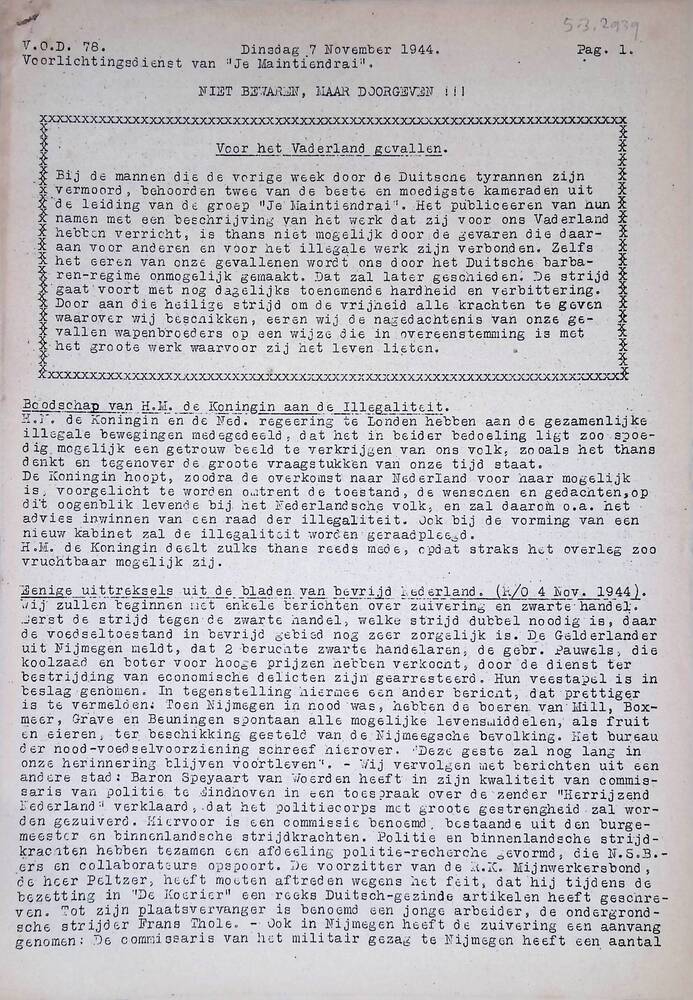 V.O.D. Voorlichtingsdienst van Je Maintiendrai, No. ...