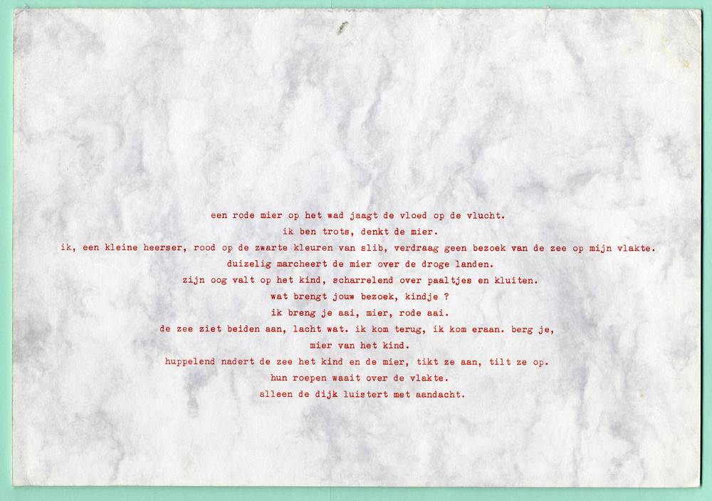 Een rode mier op het wad jaagt de vloed op de vlucht...