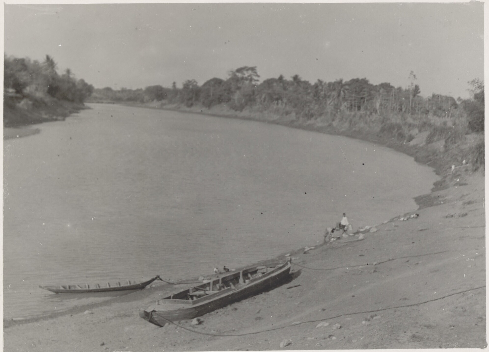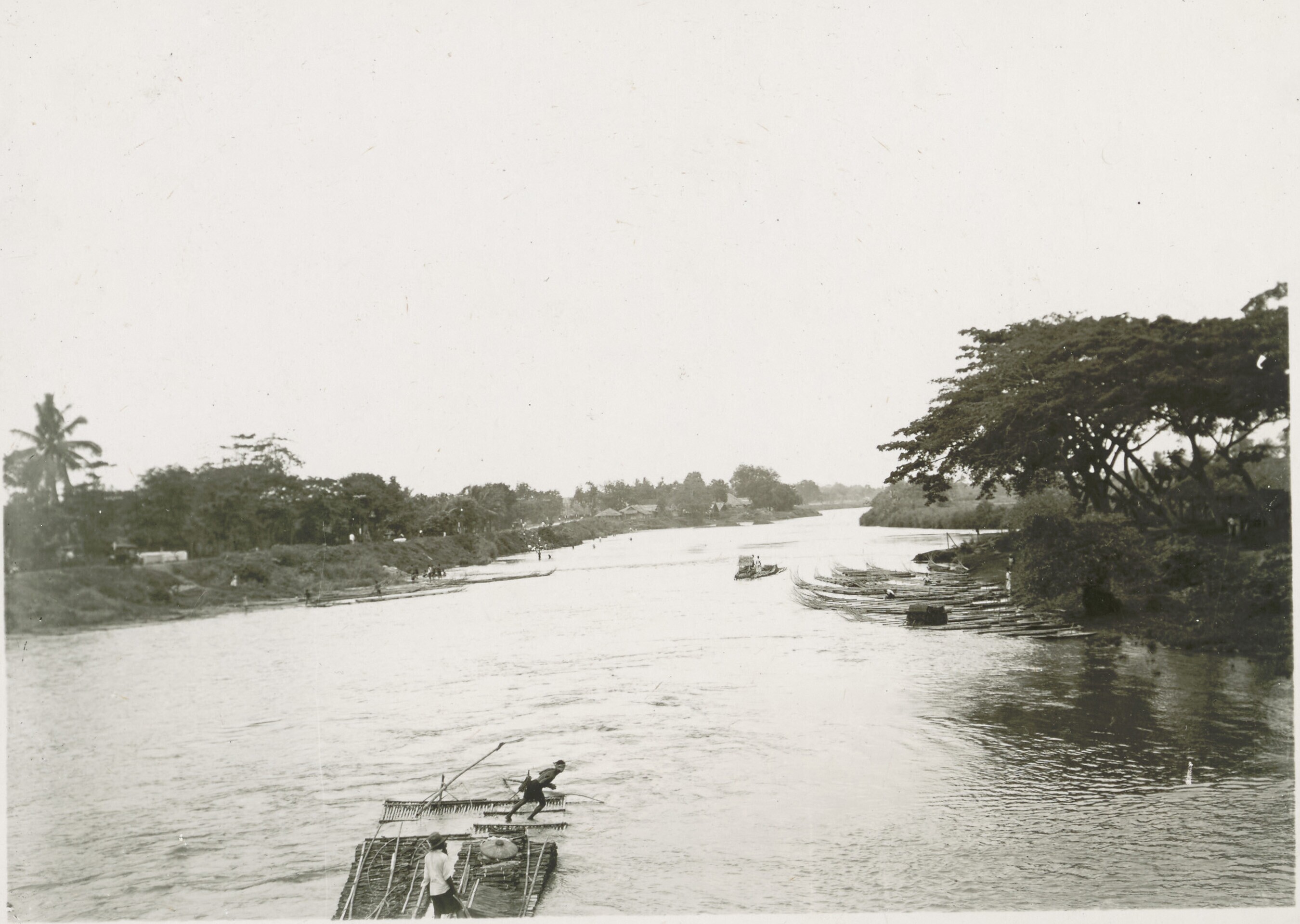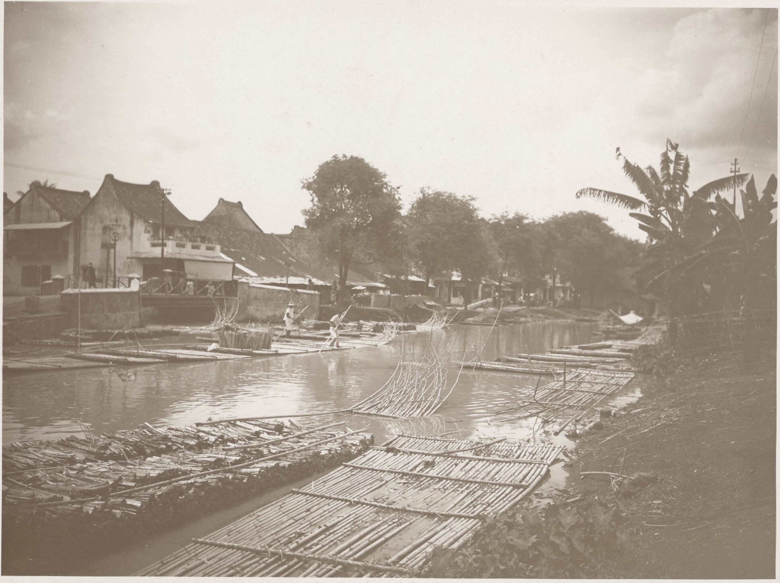Een kali in Batavia met bamboevlotten afkomstig uit ...