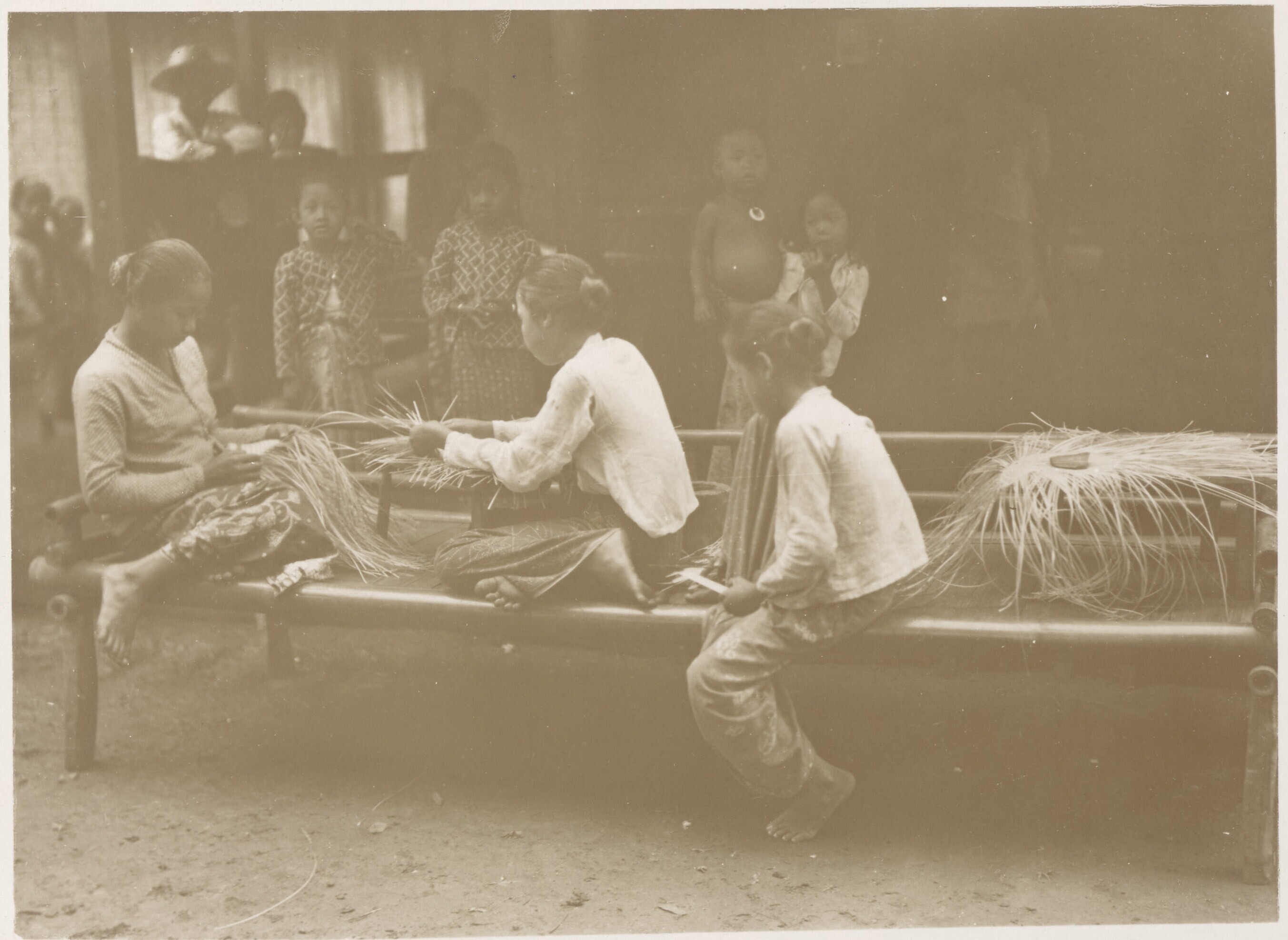 Hoedenvlechtsters aan het werk in Balaradja