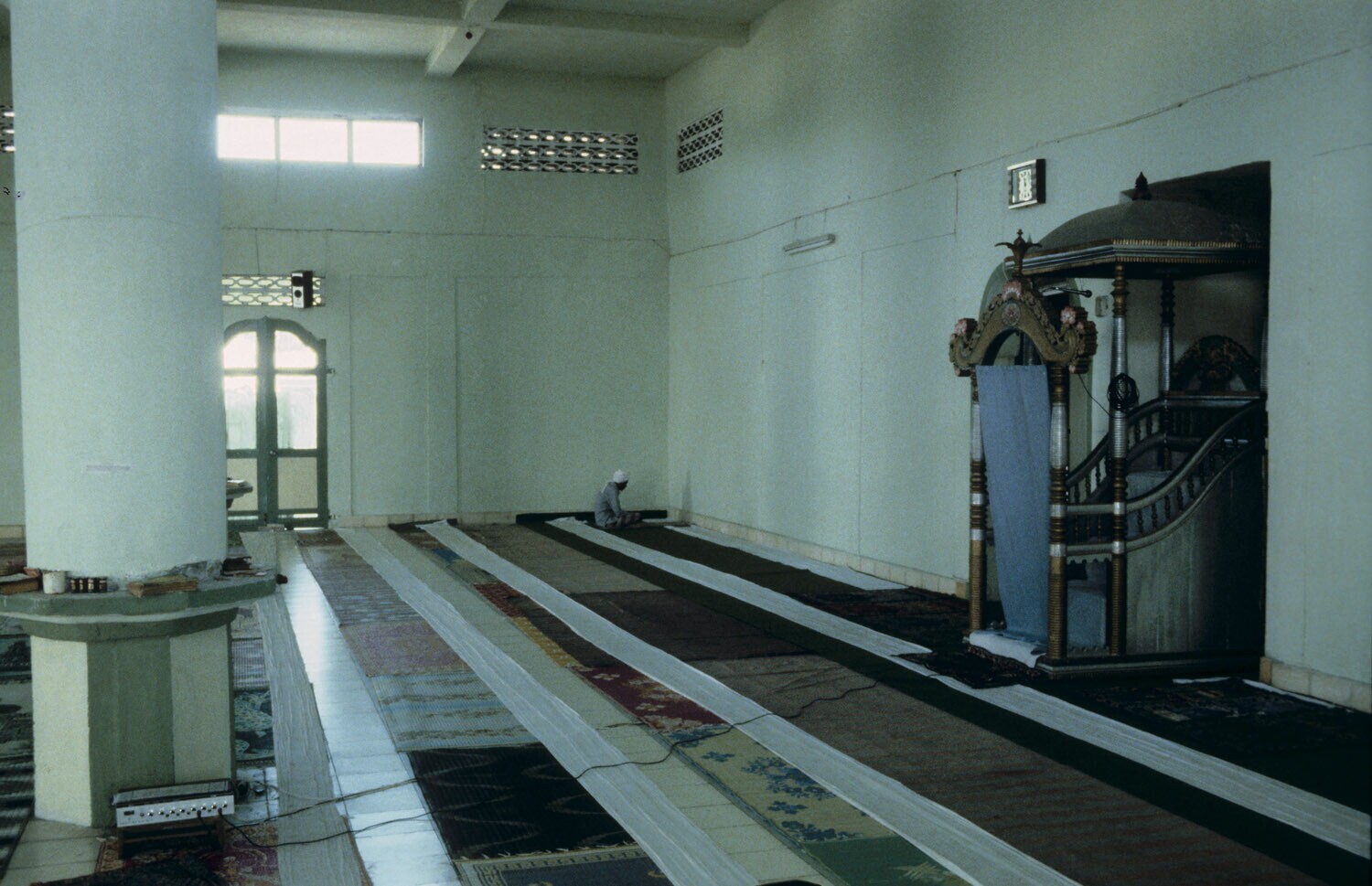 Interieur van de moskee in Tulehu op Ambon, Molukken.