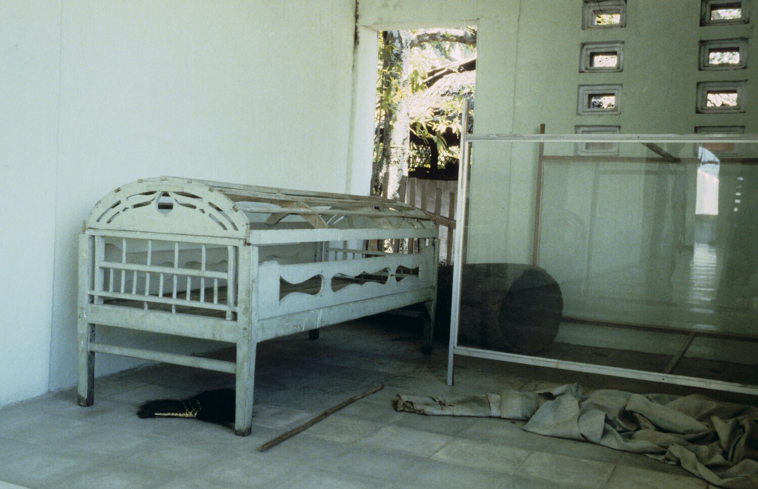 In een zijvertrek van de moskee liggen deze draagbaa...