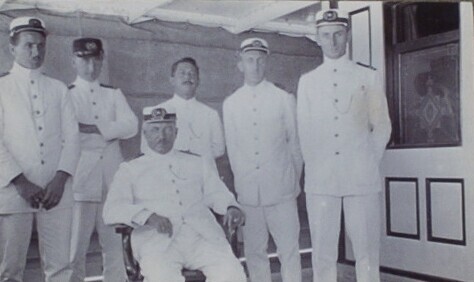 Kapitein Hopma met bemanning aan boord van stoomschi...