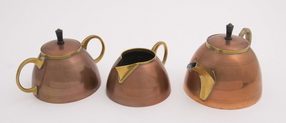 Theeservies van rood koper, vervaardigd door Metaalw...